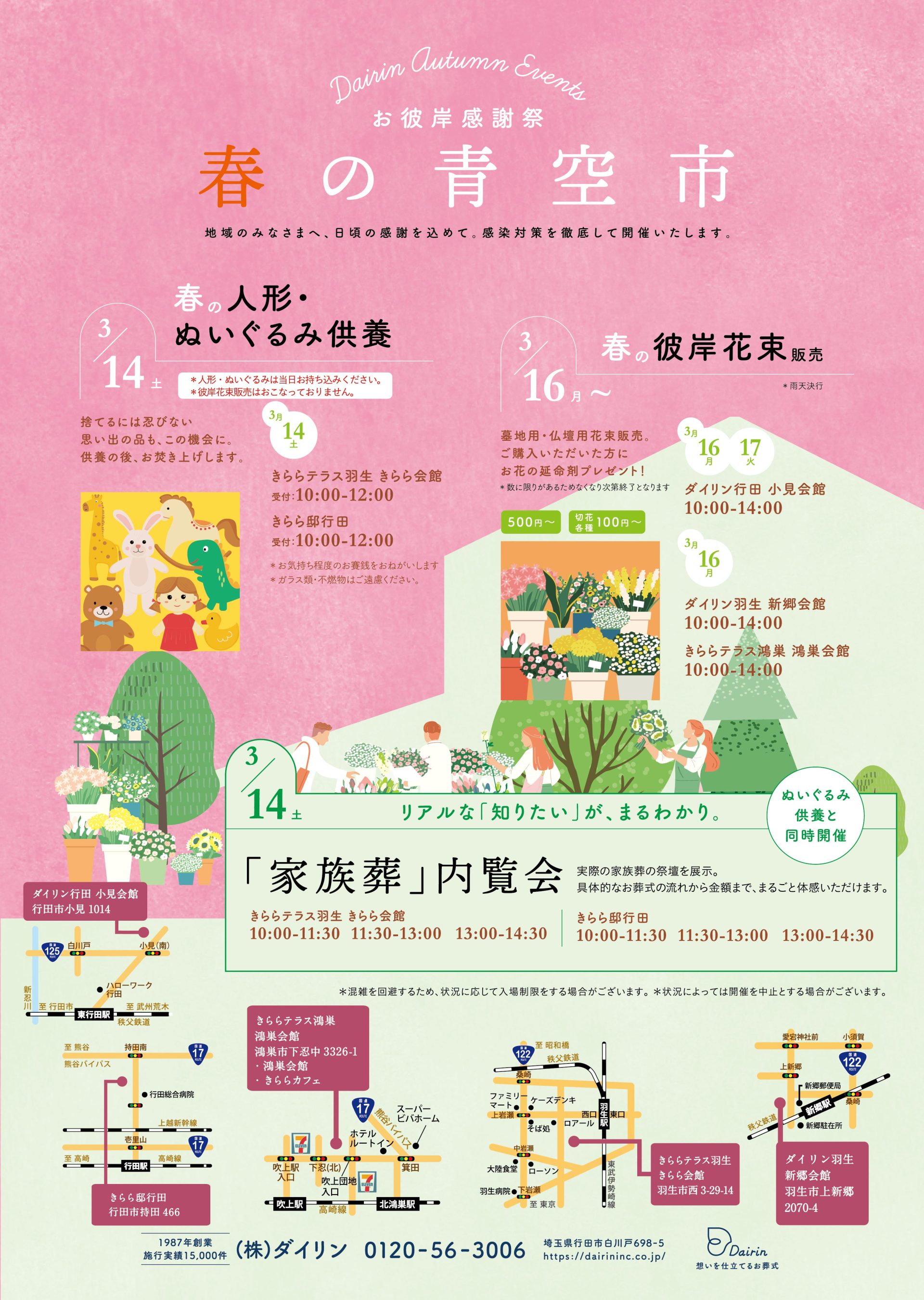 春の彼岸花束販売と人形・ぬいぐるみ供養